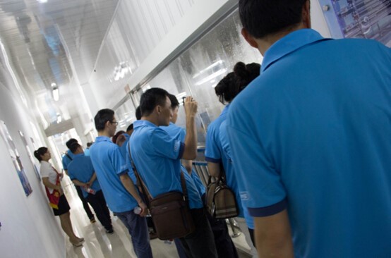 两天会议安排紧凑有序,带领经销商伙伴们参观了海欣食品在东山的新厂区。东山腾新董事长兼总经理滕用庄先生,亲自带队介绍厂区的规模及产能,一一回答经销商们的问题,极尽地主之谊。